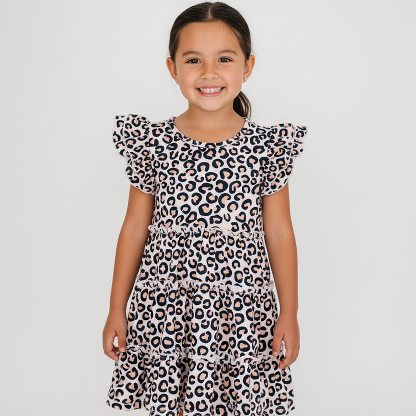 Let your little fashionista roar with confidence in our Cheetah Print Three Tiered Dress! This stylish ensemble combines trendy design with comfort for a look she'll love to wear again and again. Featuring a bold cheetah print pattern, this dress adds a fun and adventurous touch to her wardrobe. The three-tiered design adds flair and movement to her every step, ensuring she feels like a star wherever she goes. Crafted from soft and breathable fabric, it's perfect for all-day wear, whether she's attending a party, heading to school, or enjoying a day out with family. With its versatile style, our Cheetah Print Three Tiered Dress is sure to become her new favorite go-to piece for any occasion. Let her express her unique style with this must-have addition to her closet!