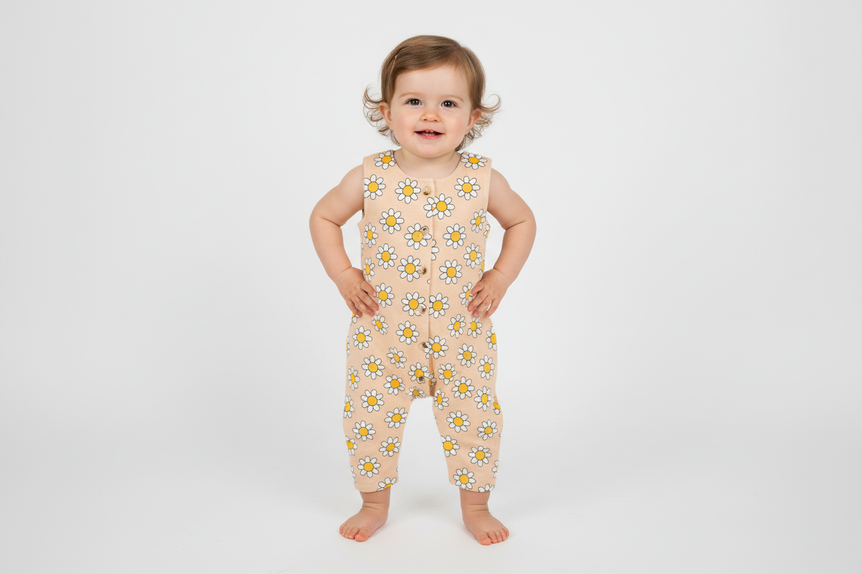 Crafted with care, this romper features a subtle biscuit hue adorned with delicate daisy embroidery, exuding a timeless and graceful appeal. Perfect for both casual outings and special occasions, this romper offers versatility and style in one adorable package. The soft, breathable fabric ensures your baby stays comfortable all day long, while the gentle elastic waistband provides a snug yet flexible fit. Whether it's a day at the park or a family gathering, your little one will shine in the understated beauty of the Daisy Romper. Embrace effortless style and comfort with the Daisy Romper in Biscuit, a wardrobe essential for every precious moment.