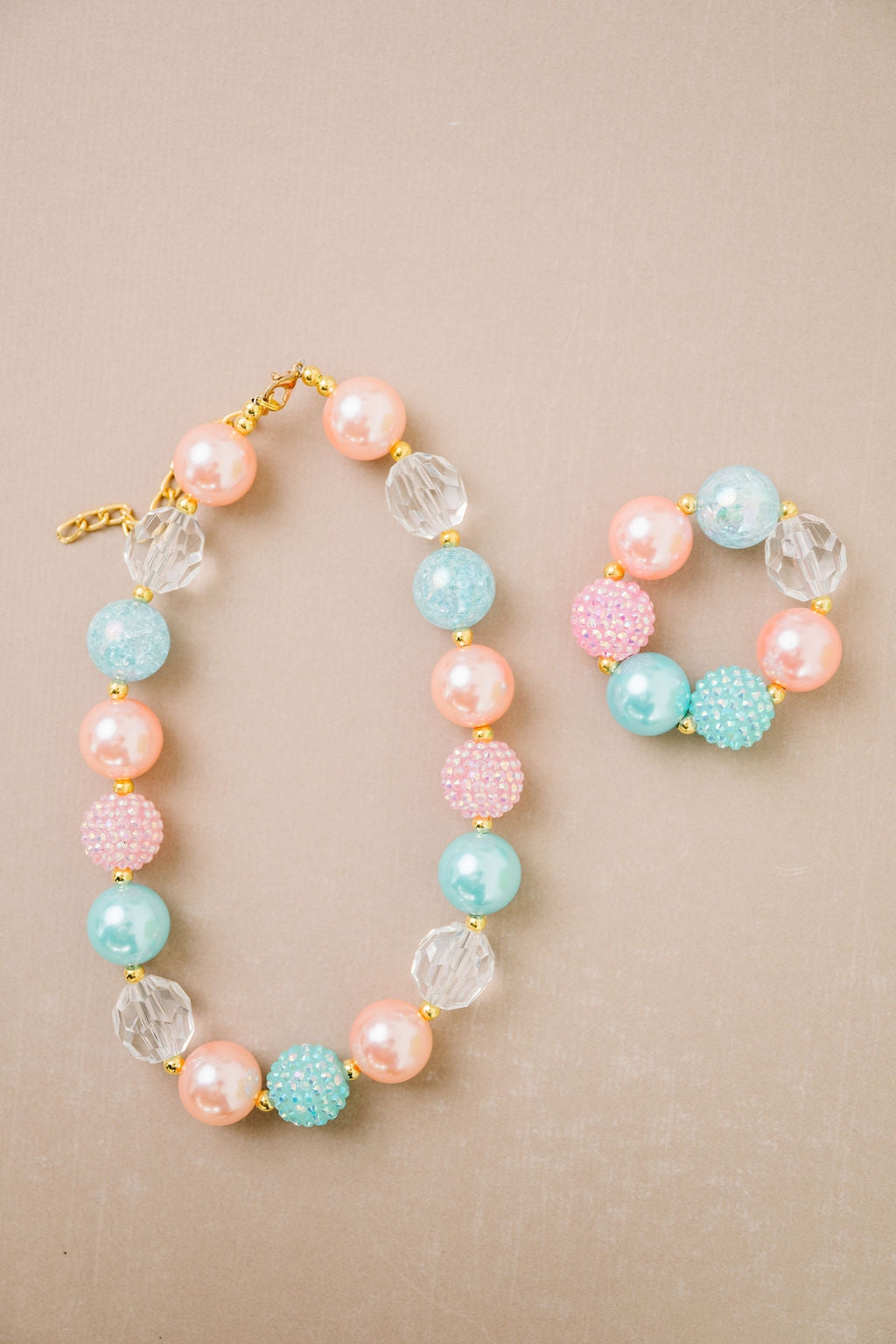 Add a pop of fun and Easter color to your little one’s wardrobe with our delightful Bubblegum Necklaces in Peach, Pink & Blue. These charming accessories are perfect for adding a touch of whimsy and personality to any outfit, whether it's for playtime, parties, or special occasions. Crafted with vibrant beads and designed for comfort and style, our Bubblegum Necklaces are sure to become a favorite accessory in your child's collection.