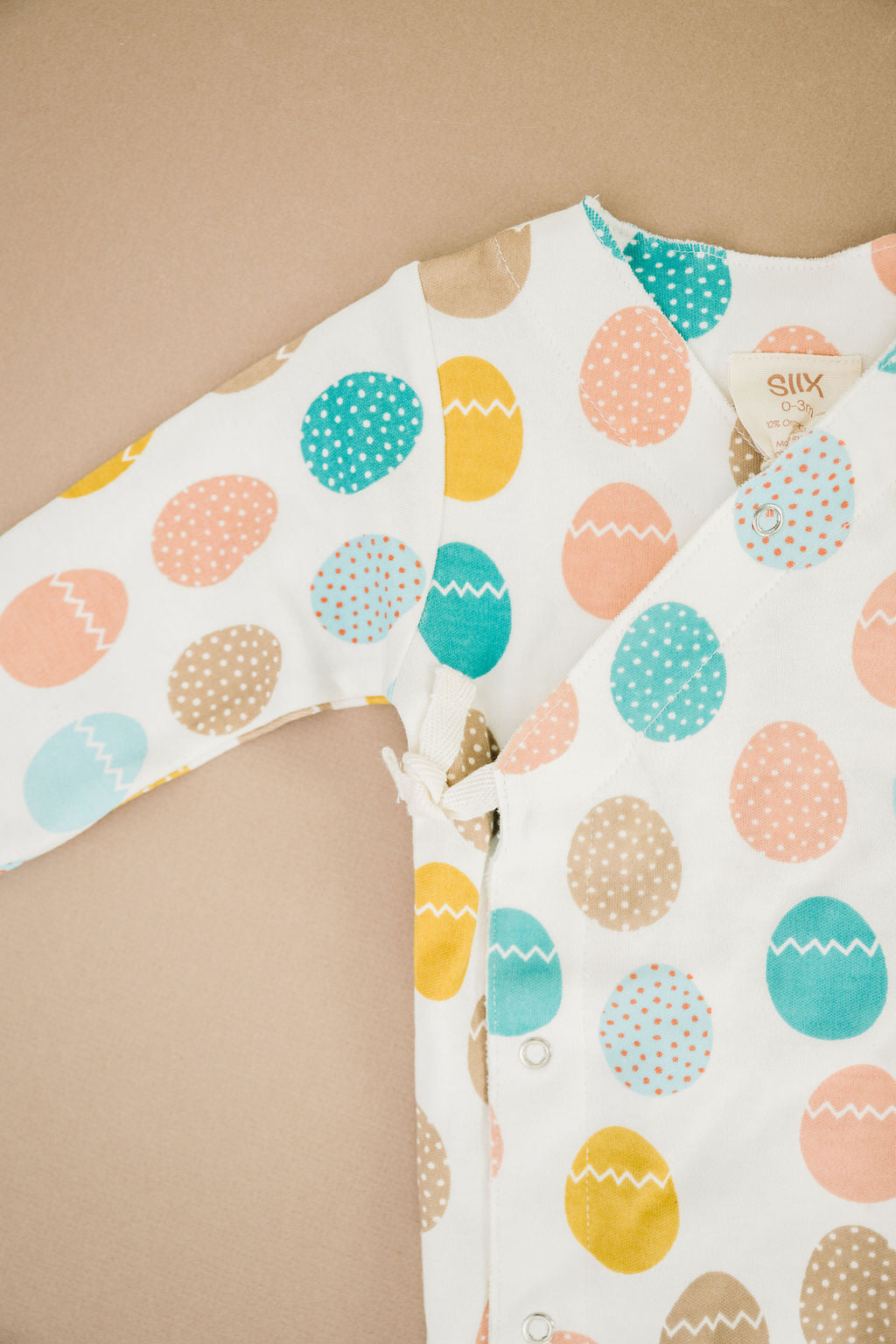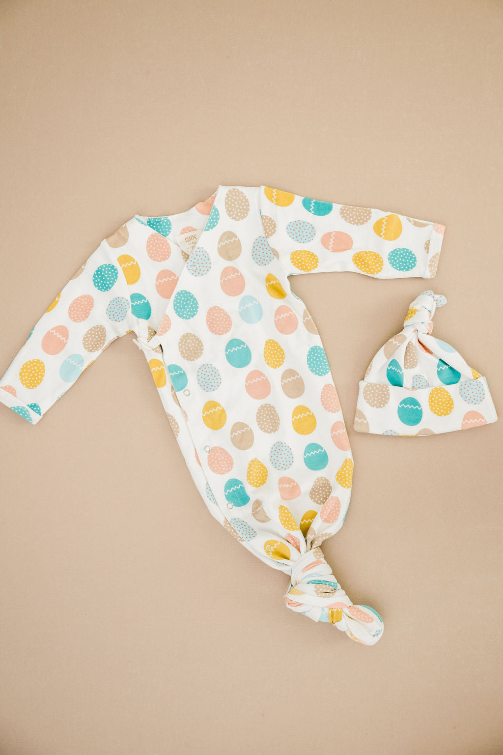 Perfect for baby's first Easter. The Organic Kimono Knot Gown is versatile but oh so soft and simple. The kimono detail and ability to adjust the sizing by knotting the bottom make this gown perfect for birth announcement photos for newborns. At home, diaper changes and keeping baby’s legs and feet warm have never been easier (or more adorable). Features side snaps and built-in mitten cuffs