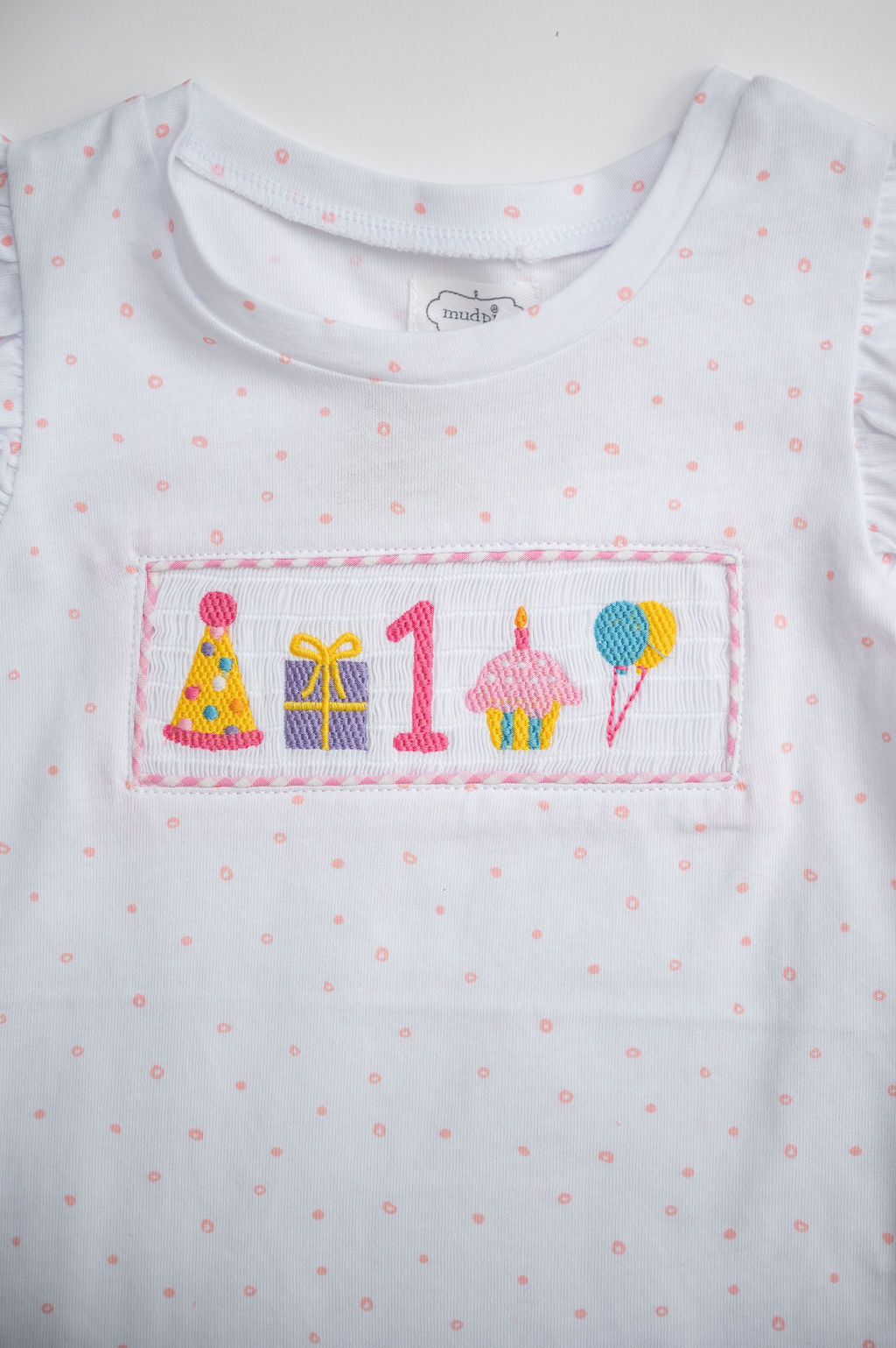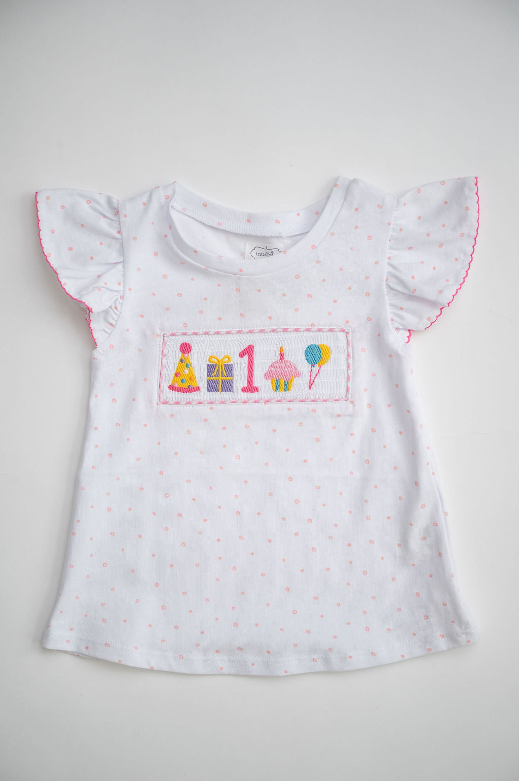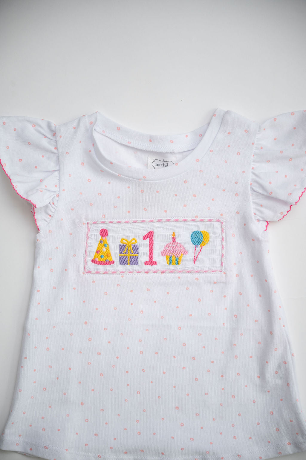 Celebrate your little princess’s first birthday in style with the Mud Pie 1st Birthday Girls Shirt! This adorable short-sleeve tee is made from soft, breathable cotton, ensuring all-day comfort for your baby girl. Featuring a sweet "1" applique with delicate stitching and girly details, this shirt is perfect for cake smashes, birthday parties, and capturing those unforgettable first birthday moments. The easy slip-on design makes dressing hassle-free, so your little one can focus on the fun!