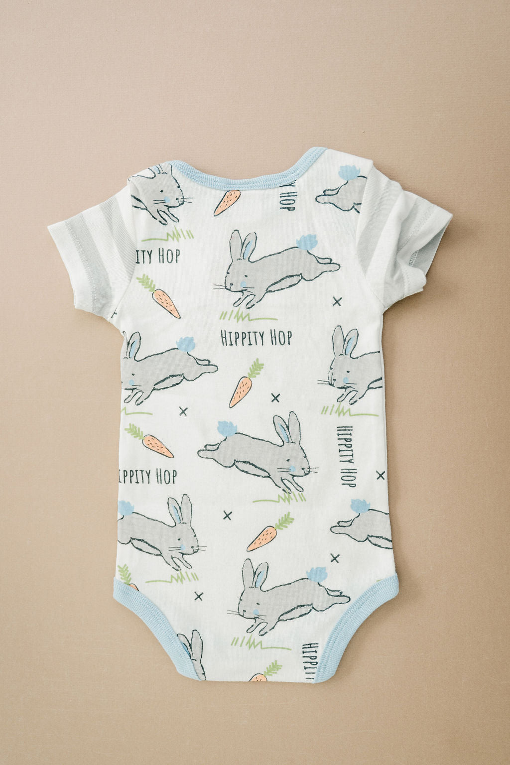 Celebrate Easter in style with this charming baby boy onesie featuring a playful bunny print. Crafted from...